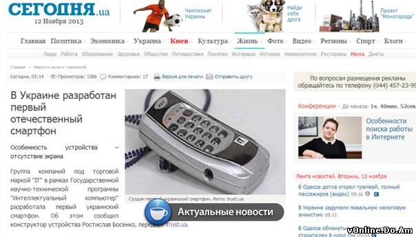 Сегодня утром ряд популярных украинских СМИ опубликовали новости о том, что в Украине разработан первый отечественный смартфон. Издания ссылаются на первоисточник