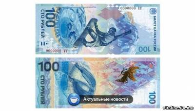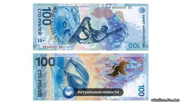 | Банк России запустил производство сторублевых банкнот, посвященных Олимпиаде в Сочи. Тираж памятных сторублевок составляет 20 миллионов экземпляров. Изображение на банкноте впервые вертикально ориентировано. На лицевой стороне сторублевки изображен сноубордист в прыжке на фоне олимпийских объектов в Сочи, а на оборотной — главный стадион Игр «Фишт» и жар-птица, похожая на факел. Купюра, поступившая в обращение ровно за сто дней до Олимпиады, выполнена в сине-голубых тонах. Для защиты на банкноте имеется прозрачное окно, созданное за счет введения в бумагу полимерной ленты. На просвет в окне виднеется снежинка, которая меняет цвет в зависимости от угла зрения. Также для защиты в верхней части сторублевки имеется филигранный водяной знак из нескольких переливающихся ромбов. | |
